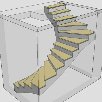 Geometrie zur Planung einer speziellen Treppe in diese Geometrie